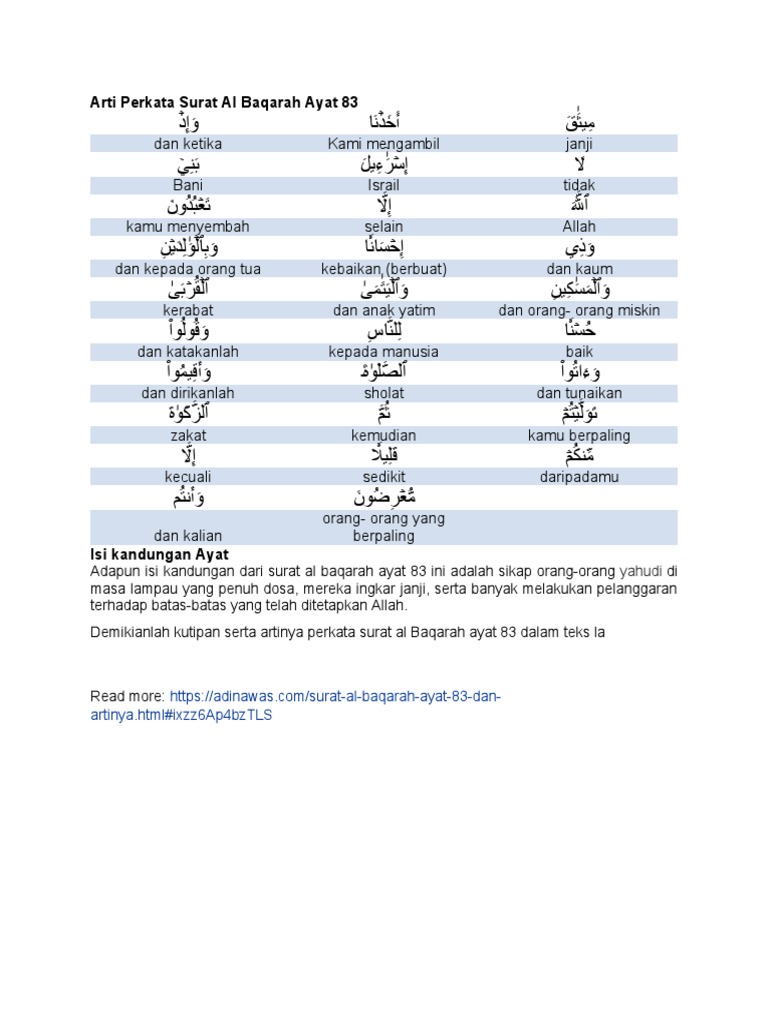 Arti Perkata Surat Al Baqarah Ayat 83 Dan Luqman 13 14 Pdf