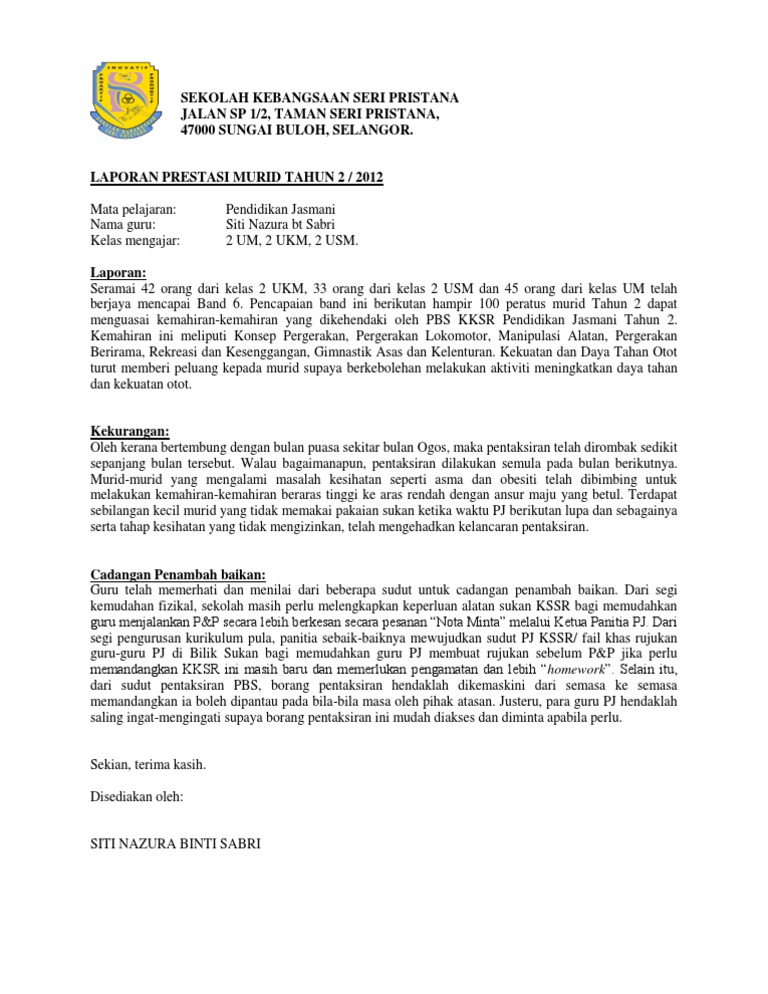 ٢٣ جمادى الآخرة ١٤٤٢ هـ. Contoh Surat Laporan Prestasi Pelajar Get link. Pendidikan jasmani siti nazura bt sabri 2 um 2 ukm 2 usm.